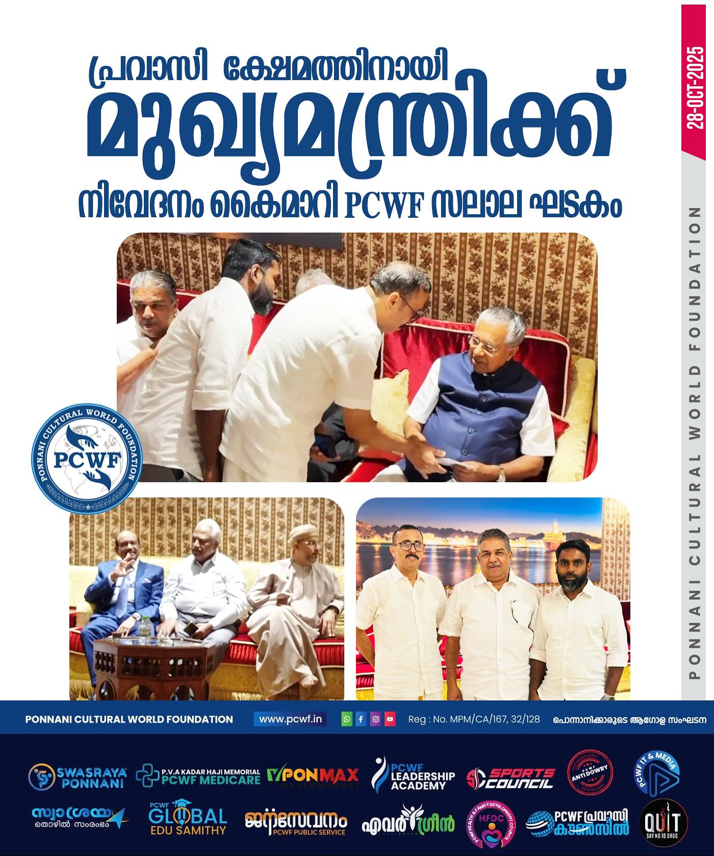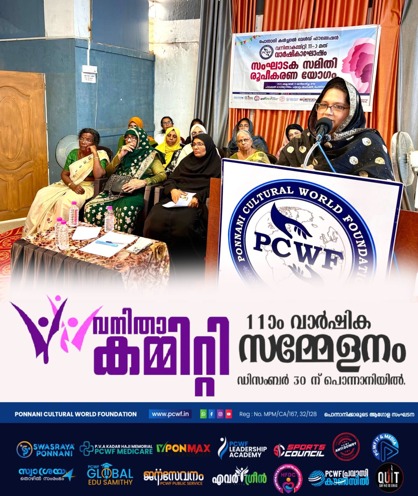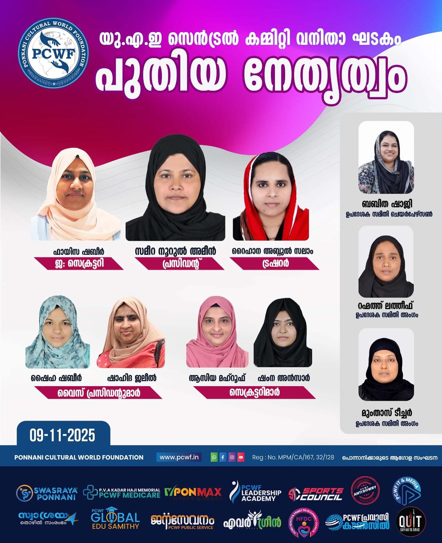 അൽ ദൈദ് : പൊന്നാനി കൾച്ചറൽ വേൾഡ് ഫൗണ്ടേഷൻ യു.എ.ഇ വനിതാ കമ്മിറ്റി ജനറൽ ബോഡി യോഗം ഒക്ടോബർ 19 ഞായറാഴ്ച്ച ഷാർജ അൽ ദൈദ്, അൽ മഹാ ഫാം ഹൗസിൽ ചേർന്നു. യു എ ഇ യിലെ വിവിധ എമിറേറ്റുകളെ പ്രതിനിധീകരിച്ച് നാൽപ്പതിലധികം വനിതകൾ പങ്കെടുത്തു. ലേഡീസ് വിങ് പ്രസിഡന്റ് റഹ്മത്ത് ലത്തീഫിന്റെ അധ്യക്ഷതയിൽ ചേർന്ന യോഗം ഗ്ലോബൽ വൈ: പ്രസിഡന്റും സ്വശ്രയ കമ്പനി ചെയർമാനുമായ ഡോ: എ.ആർ.കെ. ഉദ്ഘാടനം ചെയ്തു. ഗ്ലോബൽ പ്രസിഡന്റ് സി. എസ് മുഖ്യപഭാഷണം നിർവഹിച്ചു. സെക്രട്ടറി ഷൈഹ ഷബീർ പ്രവർത്തന റിപ്പോർട്ട് അവതരിപ്പിച്ചു. പ്രവാസി എഴുത്തുകാരൻ ഷാജി ഹനീഫ്, മുഹമ്മദ് അനീഷ് (ജി. സി.സി. കോർഡിനേറ്റർ), അബ്ദുൽ സമദ്. വി (യു.എ.ഇ സെൻട്രൽ കമ്മിറ്റി ഉപദേശക സമിതി ചെയർമാൻ) തുടങ്ങിയവർ ആശംസകൾ നേർന്നു. ജനറൽ സെക്രട്ടറി സമീറ നൂറുൽ അമീൻ സ്വാഗതവും സെക്രട്ടറി ഫായിസ ഷബീർ നന്ദിയും പറഞ്ഞു. തുടർന്ന് നടന്ന കമ്മിറ്റി പുന:സംഘടനയിൽ 21 അംഗ എക്സിക്യൂട്ടീവ് കമ്മിറ്റിയെ തിരഞ്ഞെടുത്തു. ബബിത ഷാജിയെ ഉപദേശക സമിതി ചെയർപേഴ്സണായും റഹ്മത്ത് ലത്തീഫ്, മുംതാസ് ടീച്ചർ എന്നിവരെ ഉപദേശക സമിതി അംഗങ്ങളായും തിരഞ്ഞടുത്തു. പ്രധാന ഭാരവാഹികൾ: പ്രസിഡന്റ്: സമീറ നൂറുൽ ആമീൻ, (ഫുജൈറ) ജനറൽ സെക്രട്ടറി: ഫായിസ ഷബീർ (ദുബായ്) ട്രഷറർ: റൈഹാന അബ്ദുൽ സലാം (അജ്മാൻ) വൈസ് പ്രസിഡന്റുമാർ : ഷൈഹ ഷബീർ, (അബുദാബി), ഷാഹിദ ജലീൽ (റാസൽഖൈമ) സെക്രട്ടറിമാർ: ആസിയ മഹ്റൂഫ് (ഷാർജ) ഷംന അൻസാർ (ദുബൈ) എക്സിക്യൂട്ടീവ് അംഗങ്ങൾ: 1. മിഥില അബുദാബി 2. രഹന ദുബൈ 3. സറീന ദുബൈ 4. ഷബ്ന അബുദാബി 5. ഷക്കീല അജ്മാൻ 6. സിനി ഷാർജ 7. തനൂജ ദുബൈ 8. ഷക്കീല അജ്മാൻ 9. ഫാത്തിമ അജ്മാൻ 10. ഷാജിത അബൂദാബി 11. റാഷിദ അബുദാബി