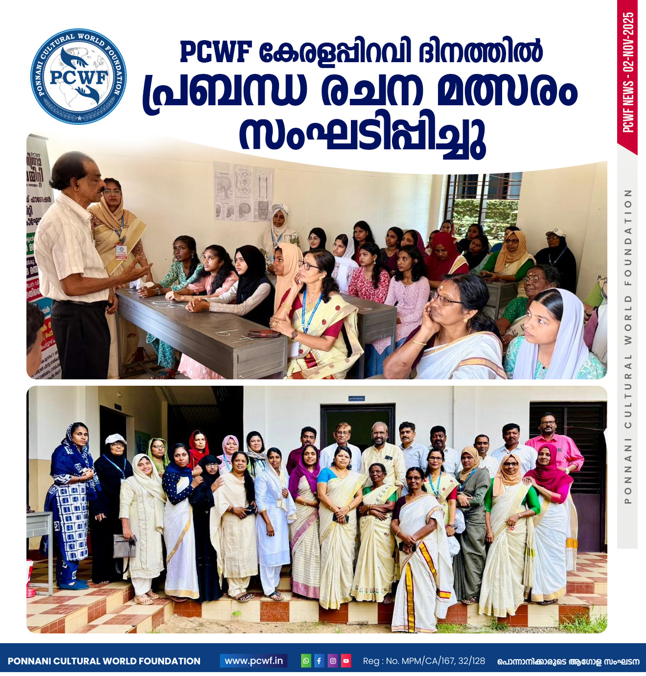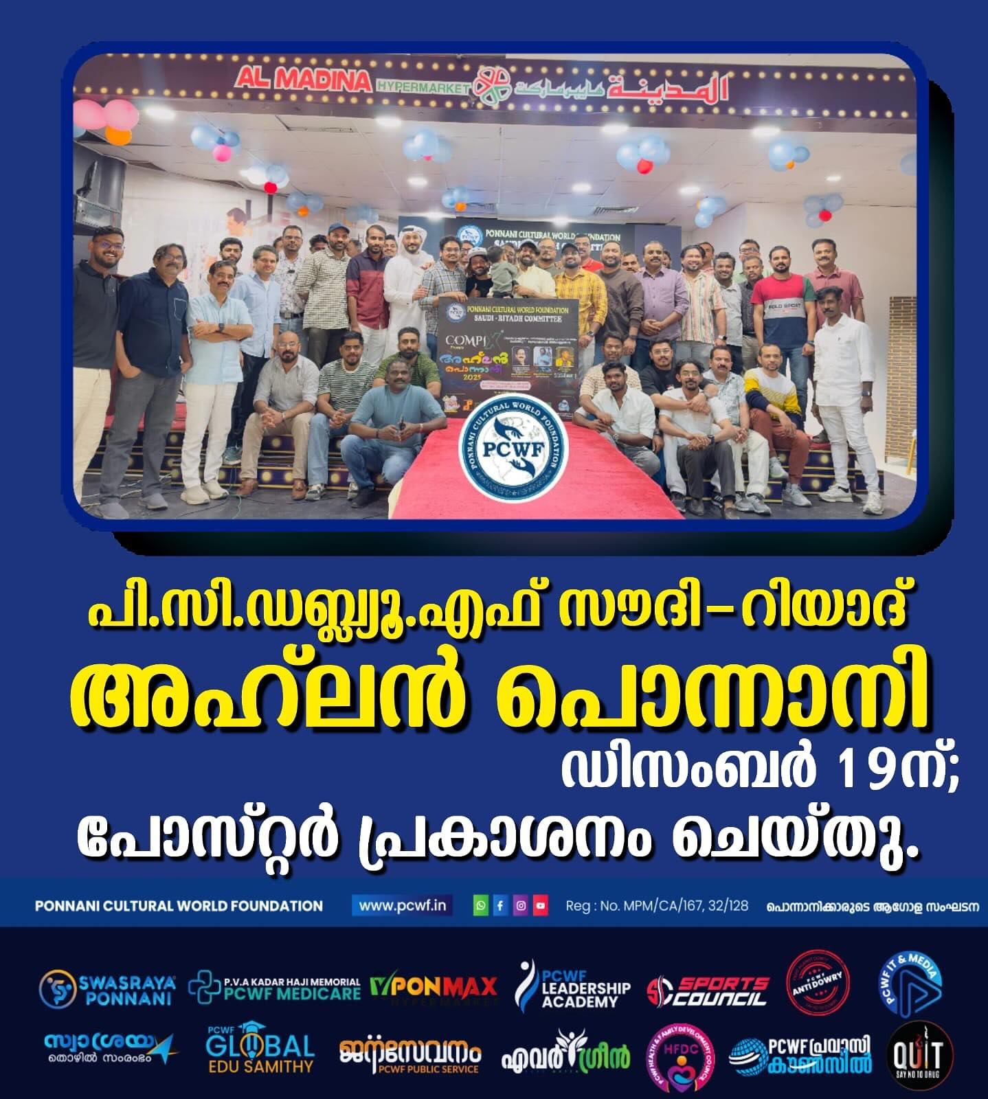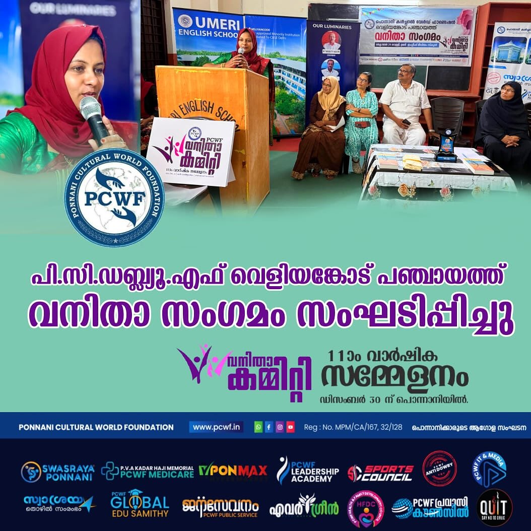 തുടരുക...അൽ ദൈദ് : പൊന്നാനി കൾച്ചറൽ വേൾഡ് ഫൗണ്ടേഷൻ യു.എ.ഇ വനിതാ കമ്മിറ്റി ജനറൽ ബോഡി യോഗം ഒക്ടോബർ 19 ഞായറാഴ്ച്ച ഷാർജ അൽ ദൈദ്, അൽ മഹാ ഫാം ഹൗസിൽ ചേർന്നു. യു എ ഇ യിലെ വിവിധ എമിറേറ്റുകളെ പ്രതിനിധീകരിച്ച് നാൽപ്പതിലധികം വനിതകൾ പങ്കെടുത്തു. ലേഡീസ് വിങ് പ്രസിഡന്റ് റഹ്മത്ത് ലത്തീഫിന്റെ അധ്യക്ഷതയിൽ ചേർന്ന യോഗം ഗ്ലോബൽ വൈ: പ്രസിഡന്റും സ്വശ്രയ കമ്പനി ചെയർമാനുമായ ഡോ: എ.ആർ.കെ. ഉദ്ഘാടനം ചെയ്തു. ഗ്ലോബൽ പ്രസിഡന്റ് സി. എസ് മുഖ്യപഭാഷണം നിർവഹിച്ചു. സെക്രട്ടറി ഷൈഹ ഷബീർ പ്രവർത്തന റിപ്പോർട്ട് അവതരിപ്പിച്ചു. പ്രവാസി എഴുത്തുകാരൻ ഷാജി ഹനീഫ്, മുഹമ്മദ് അനീഷ് (ജി. സി.സി. കോർഡിനേറ്റർ), അബ്ദുൽ സമദ്. വി (യു.എ.ഇ സെൻട്രൽ കമ്മിറ്റി ഉപദേശക സമിതി ചെയർമാൻ) തുടങ്ങിയവർ ആശംസകൾ നേർന്നു. ജനറൽ സെക്രട്ടറി സമീറ നൂറുൽ അമീൻ സ്വാഗതവും സെക്രട്ടറി ഫായിസ ഷബീർ നന്ദിയും പറഞ്ഞു. തുടർന്ന് നടന്ന കമ്മിറ്റി പുന:സംഘടനയിൽ 21 അംഗ എക്സിക്യൂട്ടീവ് കമ്മിറ്റിയെ തിരഞ്ഞെടുത്തു. ബബിത ഷാജിയെ ഉപദേശക സമിതി ചെയർപേഴ്സണായും റഹ്മത്ത് ലത്തീഫ്, മുംതാസ് ടീച്ചർ എന്നിവരെ ഉപദേശക സമിതി അംഗങ്ങളായും തിരഞ്ഞടുത്തു. പ്രധാന ഭാരവാഹികൾ: പ്രസിഡന്റ്: സമീറ നൂറുൽ ആമീൻ, (ഫുജൈറ) ജനറൽ സെക്രട്ടറി: ഫായിസ ഷബീർ (ദുബായ്) ട്രഷറർ: റൈഹാന അബ്ദുൽ സലാം (അജ്മാൻ) വൈസ് പ്രസിഡന്റുമാർ : ഷൈഹ ഷബീർ, (അബുദാബി), ഷാഹിദ ജലീൽ (റാസൽഖൈമ) സെക്രട്ടറിമാർ: ആസിയ മഹ്റൂഫ് (ഷാർജ) ഷംന അൻസാർ (ദുബൈ) എക്സിക്യൂട്ടീവ് അംഗങ്ങൾ: 1. മിഥില അബുദാബി 2. രഹന ദുബൈ 3. സറീന ദുബൈ 4. ഷബ്ന അബുദാബി 5. ഷക്കീല അജ്മാൻ 6. സിനി ഷാർജ 7. തനൂജ ദുബൈ 8. ഷക്കീല അജ്മാൻ 9. ഫാത്തിമ അജ്മാൻ 10. ഷാജിത അബൂദാബി 11. റാഷിദ അബുദാബി